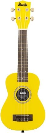 Artikelnummer 1092654Soprano, poppelkropp, furuhals, rosenträgreppbräda, 12 band, Aquila-strängar, matt gul finish, svart remknapp, dragskopåse