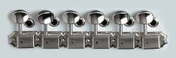 Stämskruv för elgitarr. 3 Vänster, 3 höger. Nickel. med vintage-style tulip-knappar