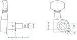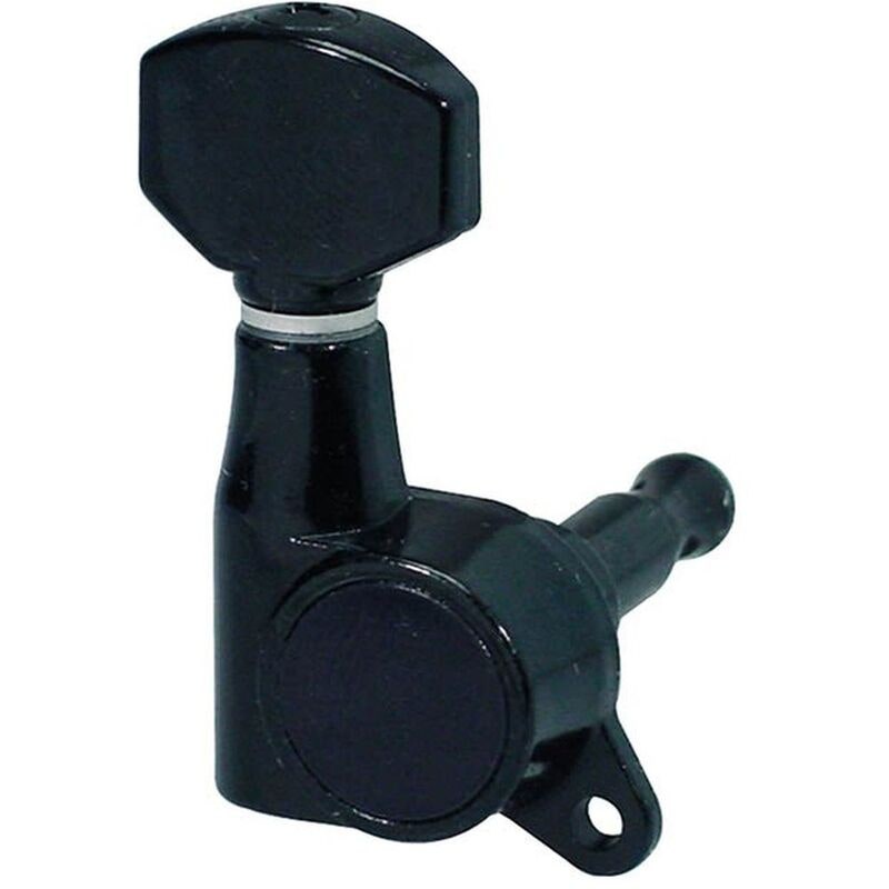 Ett set med sex stämskruvar för elgitarr, samtliga för montering på vänster sida av huvudets baksida. Modellen är die-cast-tillverkad och har ett 1:16-utväxlingsförhållande för noggrann stämning. Levereras med bussningar och brickor för montering.