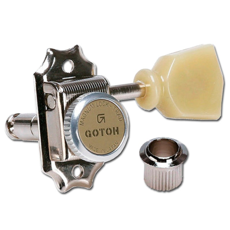 Artikelnummer 1046683Locking Tuner set for electric guitar. 3 left, 3 right. Nickel.