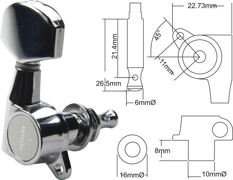 Artikelnummer 1023682Stämskruv för gitarr. 3 Vänster, 3 höger. Krom.