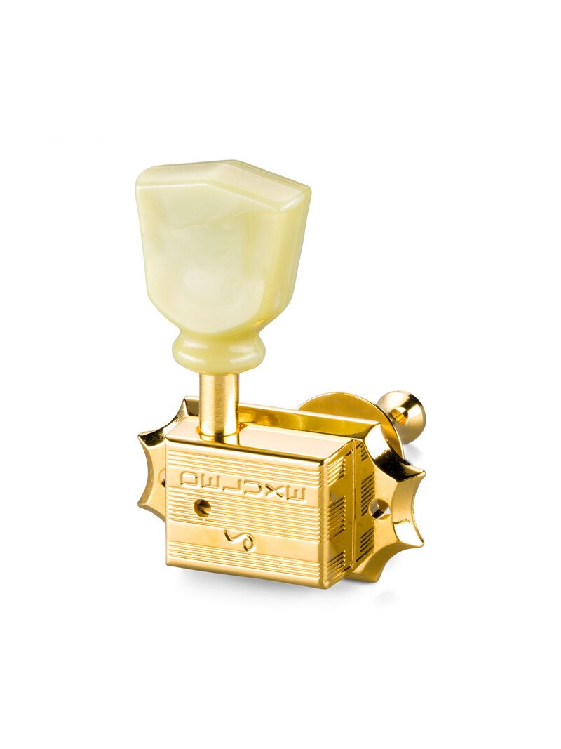 Artikelnummer 1001044Stämskruv för gitarr. 3 vänster, 3 höger. Guld.