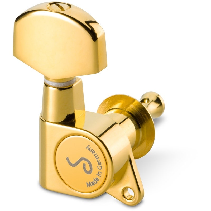 Artikelnummer 1001037Stämskruv för gitarr. 3 vänster, 3 höger. Guld.