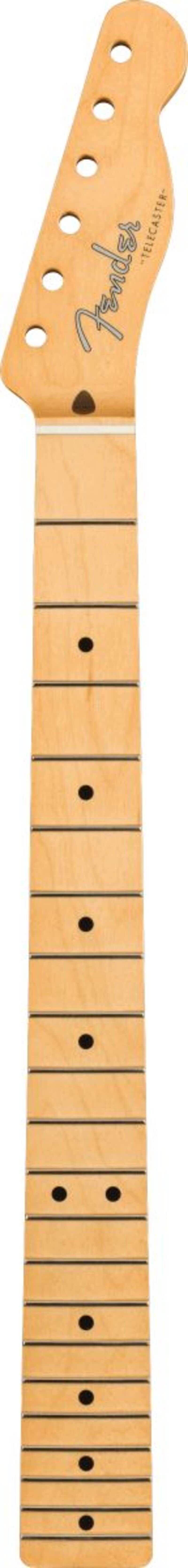 Tillverkad vid Fenders fabrik i Ensenada, Mexiko, har denna Fender Telecaster gitarrhals en betydande 1951 "U"-formad profil och 9.5"-radie lönngreppbräda med 21 6105-band. Den syntetiska benmuttern är förspårad med "pilot" strängplaceringsgropar för att göra det lätt när du utför den slutgiltiga strängplats-filningen.