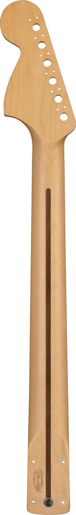 Crafted in the same facility as our U.S.-made instruments, the Channel-Bound Stratocaster® Neck combines a uniquely elegant aesthetic with a distinctively smooth fret-hand feel. The "channel-bound" fingerboard is a unique Fender innovation whereby the fingerboard is directly inlaid into the neck, eliminating the side seams while combining slick style with astounding fret-hand feel. The 9.5"-14" compound-radius rosewood fingerboard is more rounded towards the nut for easy chording, while the flatter radius in the upper register allows wide bends without fretting out. The comfortably rounded fingerboard edges and "Modern C"-shaped profile are ideal for any playing style.