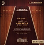 De flesta gitarrsträngar lägger till sin egen färg till gitarrens ton. D'Addario Nickel Bronze plockar istället fram gitarrens egen karaktär och låter ditt instruments naturliga frekvenser lysa igenom. Strängarna ger din gitarr en tidigare oupptäckt klarhet, resonans och projektion ihop med enastående balans och fylliga övertoner.