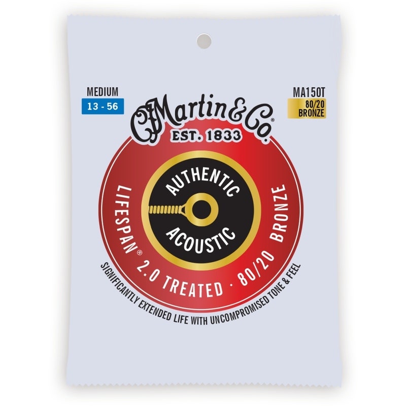 Martin Guitar MA150T Authentic Acoustic Lifespan 2.0 Guitar Strings 80/20 Bronze - Medium