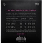 NYXL Bass kombinerar D'Addarios stålkolkärna, NY STEEL, med en omgjord nickelpläterad stålspinning. Denna konstruktion ger en djup och kraftfull baston med ett fokuserat, tajt och punchigt mellanregister och ett komplext övertonsregister. Designad för alla spelstilar har NYXL Bass ett större dynamiskt omfång och en längre sustain än någon annan bassträng.