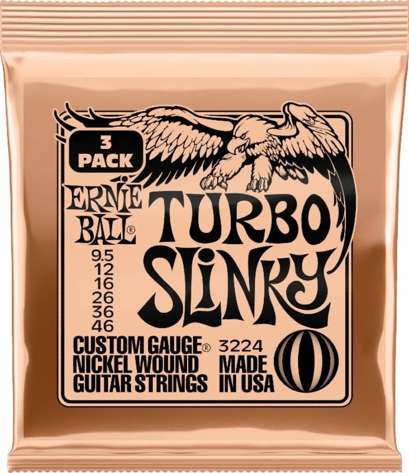 Ernie Ball Turbo Slinky - 3 pack med strängset till elgitarr