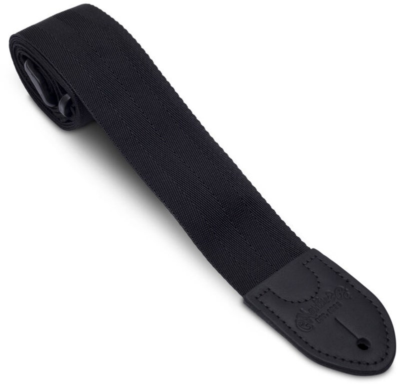 Artikelnummer 1091593Axelband, bomull med läderändar, plektrumhållare, 5 cm brett, 101 - 152 cm justerbar längd, svart