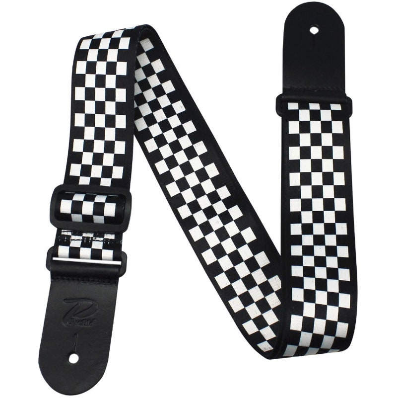 Artikelnummer 1058301Axelband i polyester till bas & gitarr, ändar i italienskt läder, slitstarkt, schackmönstrat.