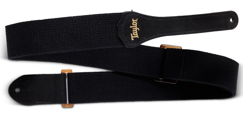 Artikelnummer 1066439GS Mini guitar strap made from premium natural cotton with genuine suede end tabs and embossed gold Taylor logo. Made in USA.
