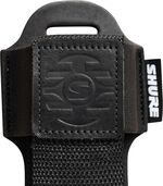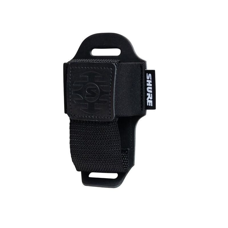 En kardborreförsedd rem möjliggör fastsättning på gitarrremmar upp till 51 mm (2”) breda. För användning på bälte finns integrerade bältesöglor som är kompatibla med bälten upp till 38 mm (1,5”). Formen är specifikt anpassad för Shure trådlösa bodypack-sändare, vilket ger stabil passform utan onödigt glapp.