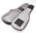 En invändig ficka för kroppen längst ner inuti, håller gitarren på plats och hindrar den att glida ut när dragkedjan öppnas. Extra förstärkning av gummi i botten skyddar också instrumentet bättre. Bagen är tillverkad av vattenavstötande material och har vattentät dragkedja. Dubbla bärremmar.