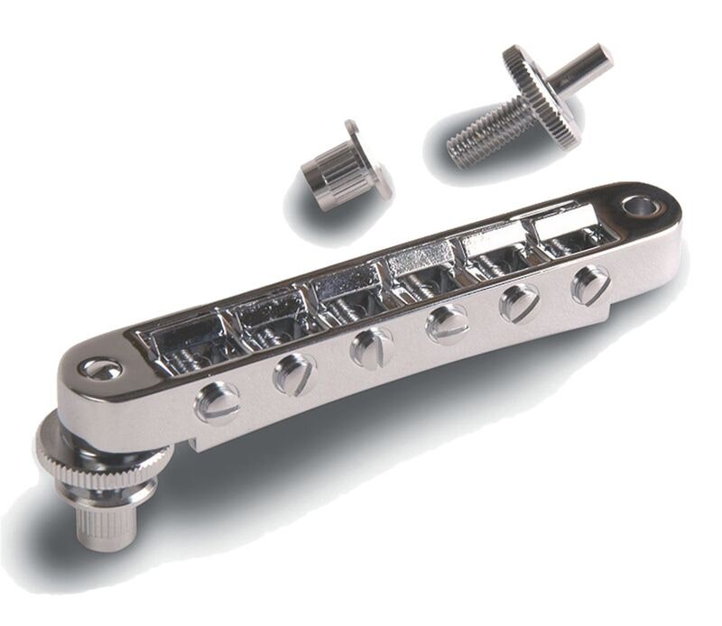 he Gibson Tune-o-matic bridge remains one of the most revered and copied pieces of guitar hardware ever developed, and the Nashville Tune-o-matic bridge offers un-notched saddles with individual saddle screw retainer clips, and a wider footing for increased intonation range. The stud and thumbwheel are also cast directly onto the bridge, allowing the Nashville Tune-o-matic to slide directly into place