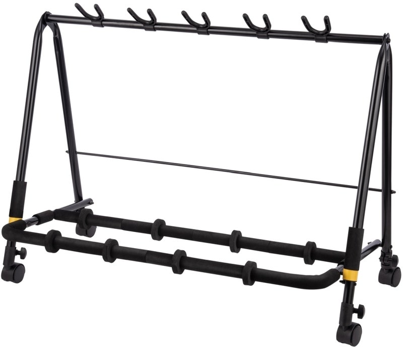 Rejält gitarrrack med hjul för 5st gitarrer. Passar både akustiska, elgitarrer & elbas.