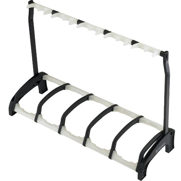 Artikelnummer 1033354Gitarrställ för 5 instrument, rackmodell, hopfällbart, lätt vikt, stabilt, svart & vit.