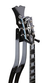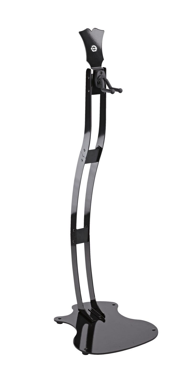 With the attractive Guitar Station, every guitar is perfectly staged - whether at home or in the studio. Thanks to the flexibly adjustable, rubber-coated mounting brackets and a usable height of 1120 mm, the Guitar Station (L) is especially suitable for "longer" guitars and basses. The solid metal construction impresses with its slim design and a high-gloss powder coating. The curved base plate with five protective felt pads ensures a secure stand.
