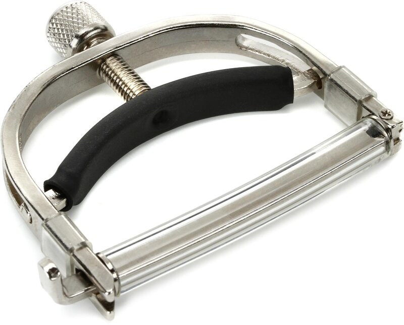 Artikelnummer 1066443Guitar capo; around-the-neck yoke design ensures superior tone, intonation and tuning stability. Easily stored behind the nut when not in use. Black or bright nickel finish. Made in USA.