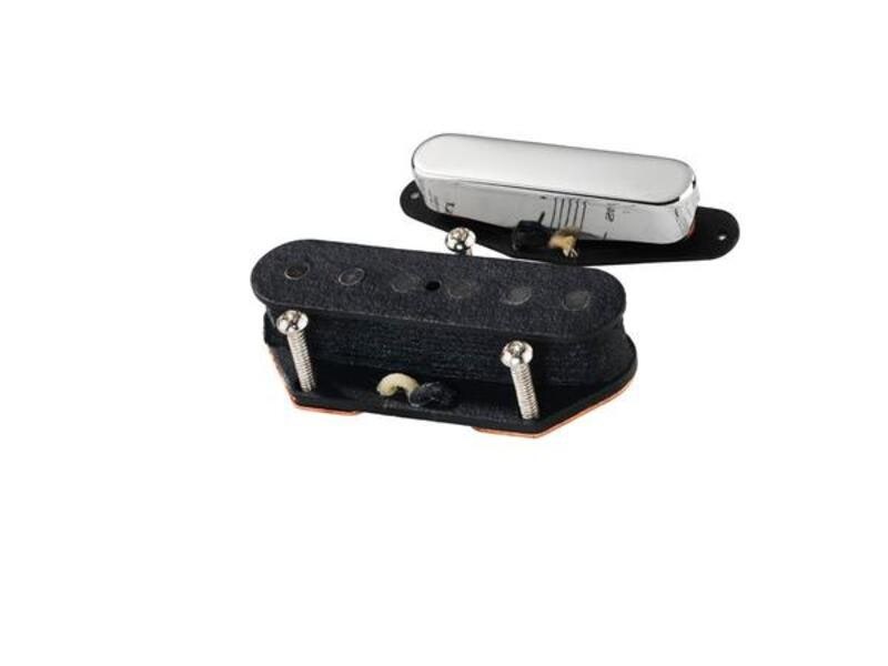 Neck pickup: With its time typical components this little wonder delivers a good necktone through its nickelsilver cover which combines nice with Vertigo bridge or any of our other Telecaster pickups. Tight lows and a clear open treble. With its '50s recipe this neck pickups matches fine with Vertigo bridge or any of our Tele bridge models. Vertigo Neck is used by some of the greatest rock artists. Our most popular Neckpickup for Tele®. This small sound scoundrel has Alnico 5-magnets bobbins made from fibreplate and all wound with a thinner AWG 43 Plain enamel brown copper wire. The magnetic polarity is reversed for use together with bridge pickup so you don't get any hum usually associated with single coils when used together.. Nickelsilver chrome cover is included.