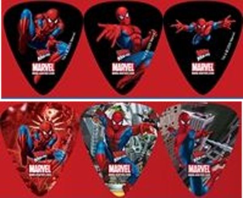Plektrumen är dekorerade med Spiderman-motiv.