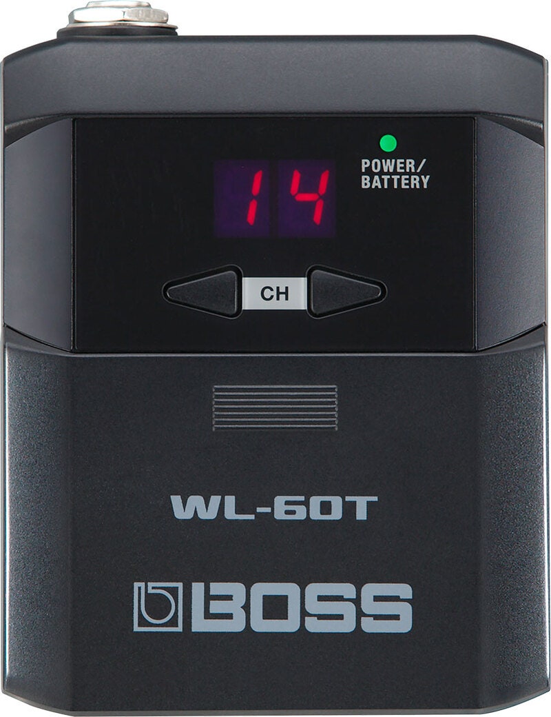 WL-60T trådlös sändare är kompatibel med BOSS WL-60 Wireless System. Den låter dig utrusta ett andra instrument för att klara snabba byten av instrument mitt under en spelning och förser dig även med en reservenhet ifall din originalsändare försvinner eller går sönder. Den robusta integrerade klämman fasts säkert på ditt axelband eller ditt bälte och du kan ändra riktning så att det passar dig. En kort standardkabel (medföljer) ger koppling instrumentet och gör att WL-60 fungerar med så gott som alla gitarrer och basar. Tack vare BOSS effektiva strömhanteringsteknologi kan du spela upp till 25 timmar med två AA alkaline-batterier.