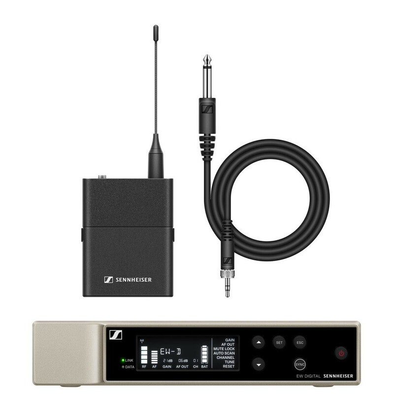 Artikelnummer 1072722Digitalt, trådlöst instrument-kit, 1 EW-D EM Digital 19 1/2"-mottagare, 1 EW-D SK digital bodypack-sändare, 1 CI1 instrumentkabel, 1 NT 12-5 CW+ strömförsörjning med reseadaptrar, 1 rackmonteringskit, AA-batterier, 470.2 - 526 MHz
