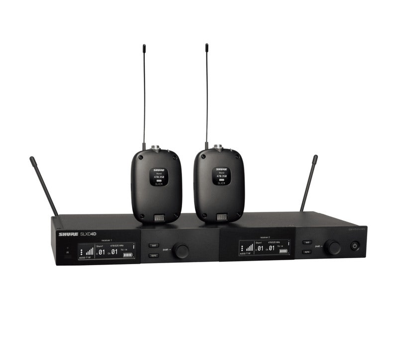 Featuring two SLXD1 transmitters, the SLXD4D provides transparent digital audio and rock-solid RF stability for lecture halls and live performances.