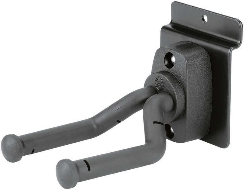 Artikelnummer 1060810Gitarrhållare för slatwall/spårpanel, självjusterande, robust, passar dom flesta gitarrmodellerna.