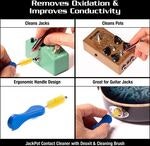 Borsten låter dig ta bort smuts från jack och pottar och används med fördel tillsammans med JackPot Contact cleaner (2ml, 70 droppar), ett elektronikrengöringsmedel speciellt framtagen för att ta bort oxid i potentiometrar och jack.