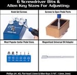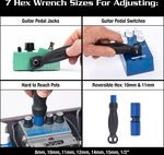 Effektpedaler lever ett hårt liv. Med MusicNomads Guitar Pedal Care kit hittar du det man behöver för att hålla pedalerna i gott skick. I kitet ingår ett verktyg som fungerar som handtag till bitshållaren men som också kan användas för att dra åt muttrar i storlekarna 8mm, 10mm, 11mm, 12mm, 14mm, 15mm, 1/2”. Den medföljande bits-satsen innehåller sex olika bits, 2 x stjärn-bits, 1 x flat-bits och 3 x insex-bits.