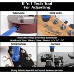 Till sist när det är dags att dra åt muttar runt potentiometrar och jack samt att dra åt skruvar eller justera mikrofoner så är Octopus 8 ‘n 1 Tech Tool ett praktiskt hjälpmedel. Namnet på verktyget ger en hint om dess mångsidighet, det har 8 st olika funktioner för olika applikationer. Förutom ett vändbart skruvmejselbit (spår- och stjärnskruv) så är handtaget designat så man kan dra åt muttrar i storlekarna 10mm, 12mm, 14mm, 1/2”, och 7/16”.