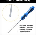Artikelnummer 1083433Det perfekta verktyget när du behöver ta bort vassa bandändar eller grader. Filen i rostfritt stål har en diamantbeläggning grovlek 280