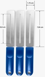 Dom innovativa bladen har en rundad form för att följa greppbrädan och tillverkade i rostfritt stål för lång och trogen tjänst. Handtagen är lätta & sköna att greppa med en form som förhindrar att fingrarna är i vägen när man jobbar. Handtagen är tillverkade i slittålig plast.