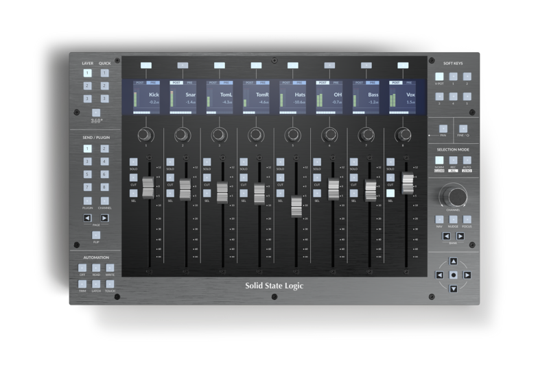 Expandable to a 32 channel control surface with integration for all major DAW platforms, UF8 is ideally suited to music creation, production and mixing, post production and webcasting. The new SSL 360° control software manages multi-controller configurations, customised user keys, and DAW switching across multiple layers, allowing for seamless switching between numerous sessions.