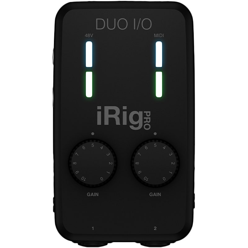iRig Pro Duo I/O har två kombinationsingångar med 6,3mm/XLR-kontakt för instrument eller mikrofon, Klass A-preamps av toppkvalité och +48V fantommatning. Den har dessutom 2,5mm MIDI in och ut så du kan även använda den som ett MIDI-interface.