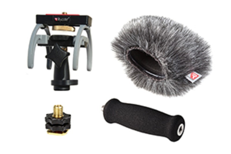 Paketet inkluderar ett ergonomiskt handtag med mjukt grepp, en upphängning som minimerar hanteringsljud, samt en adapter för montering i kamerasko. Det medföljande vindskyddet är anpassat för PCM-D100 och reducerar effektivt vindbrus vid utomhusinspelning.