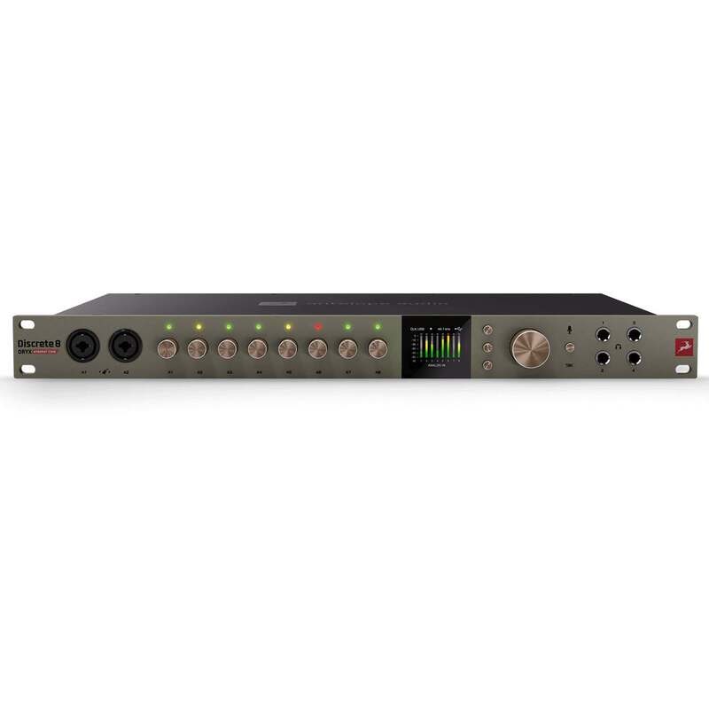 Med 26 × 38 samtidiga kanaler – inklusive preamps, line-utgångar, ADAT, S/PDIF, reamp, monitor och hörlurar – är Discrete 8 Oryx SC byggd för hybridarbetsflöden där analoga och digitala källor används parallellt. ADAT-I/O erbjuder upp till 16 kanaler vid upp till 48 kHz (I/O reduceras vid högre samplingsfrekvenser).