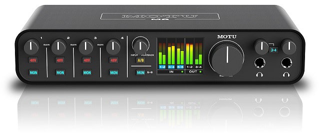MOTU M6 är ett mångsidigt USB-C audiointerface med 6 ingångar och 4 utgångar, designat för Mac, Windows och iOS. M6 levererar studiokvalitetsljud, extremt låg latency och kristallklar nivåövervakning via en fullfärgs LCD-skärm. Spela in sång, instrument eller andra ljudkällor snabbt och enkelt med funktioner som individuellt omkopplingsbar +48 V fantommatning för kondensatormikrofoner och omkopplingsbara Hi-Z-ingångar för att ansluta instrument direkt. M6 inkluderar även MOTU Performer Lite och Ableton Live Lite inspelningsprogram, över 100 instrument, flera plugin-program och över 6 GB med loopar och samplingar för att kickstarta ditt musikskapande.