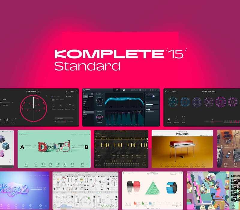 Komplete 15 Standard sees the addition of Kontakt 8 with new intelligent Tools and Leap features, Guitar Rig 7 Pro, iZotope Ozone 11 Standard, Session Percussionist, Electric Keys – Tines Duo, Session Bassist – Upright Bass, Karriem Riggins Drums, Glaze 2, VocalSynth 2, and more.