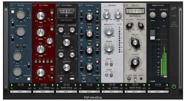 PSP InfiniStrip is an infinitely configurable channel strip plug-in (AAX, AudioUnit, VST, VST3, RTAS) based on 20 years PSP experience in developing HANDCRAFTED PLUG-INS for tracking, mixing and mastering. PSP InfiniStrip can be used for mixing, tracking or live streaming/broadcasting anywhere you need a great sounding and easy to configure channel strip, without having to worry about latency! That`s right - you can configure PSP InfiniStrip with whatever modules you need and track through them with confidence that the plug-in isn`t adding any latency at all to your recorded signal! ZERO LATENCY.