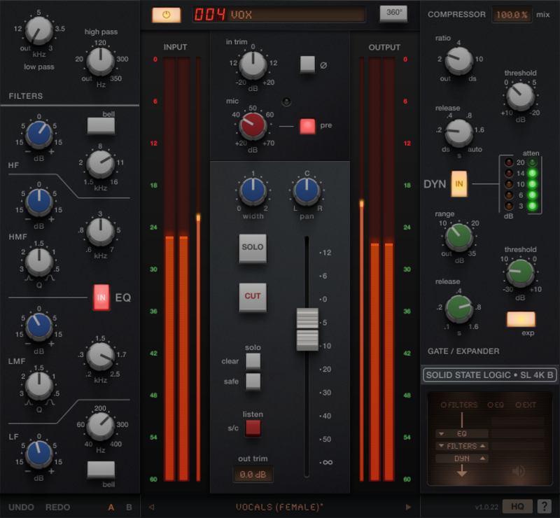 Expertly modelled and with first-class integration with the SSL 360° Plug-in Mixer ecosystem, the 4K B plug-in is an authentic emulation of the SL 4000 B channel strip – full of tone, punch and rich non-linear analogue character.