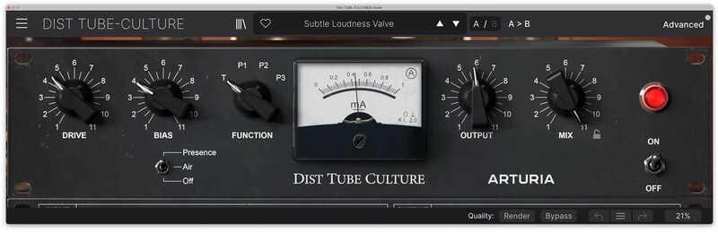 - Stereo distortion and saturation effect with emulated vacuum tube character