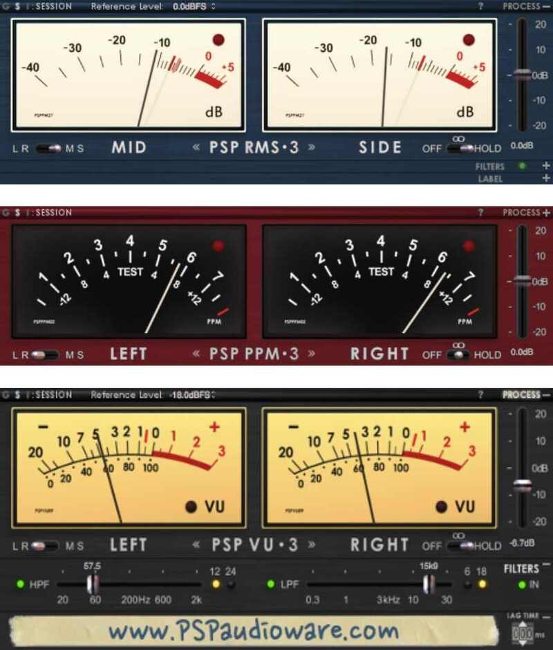 PSP AUDIOWARE BlackFriday Until December 5PSP TripleMeter is the successor to the PSP 2Meters bundle. It offers three different meters - VU meters, RMS meters, and PPM meters - each with discrete features such as calibration and shared features such as trim faders, filters and a label strip. Our goal was to offer you the ability to choose between different audio measurement tools while processing audio for accurate signal measurement. Now, with a single click you can check the volume units (VU) measurements of any signal and compare it to the peak indications or RMS values!