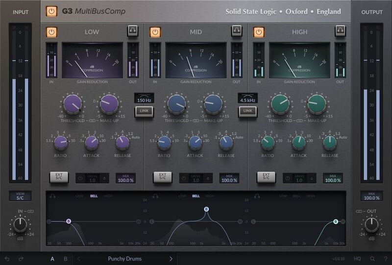 SSL G3 MultiBusComp is a must-have tool for any audio professional looking to achieve the SSL sound in their mixes, delivering the classic SSL "glue" compression sound across 3 independently configurable frequency bands. With powerful sidechaining features, intuitive feedback and per-band harmonic drive options, the G3 MultiBusComp is the perfect solution for achieving polished and professional mixes and masters that has made SSL the industry standard for decades.”