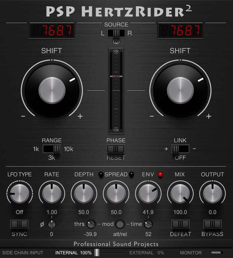 PSP HertzRider2 is the successor to the original PSP HertzRider frequency shifter. This update benefits from algorithm optimizations, and adds numerous significant new features. PSP HertzRider 2 been designed to be as simple as possible, to take as few resources as possible, and to incur only very slight (and frequency dependent) latency.