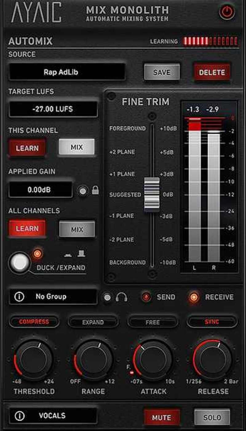 The Mix Monolith is another industry first from AYAIC. It is an Automatic Mixing System that allows you to level your tracks perfectly in any environment using level-planes. From individual tracks, to buss groups, to FX channels, to your master fader, the Mix Monolith will quickly and easily create a mix that is balanced and open.