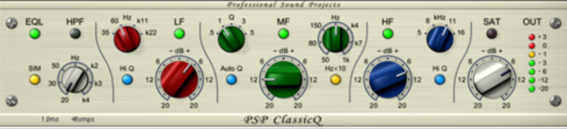 PSP ClassicQ is inspired by various classic British-style equalizers. It captures the sound and flavor of famously musical high and low filters (such as those in early Neve EQs), melded to very precise mid-range filter. In addition, PSP ClassicQ offers a selectable simulation of class A circuitry and output transformer for a unique, vintage-style color.