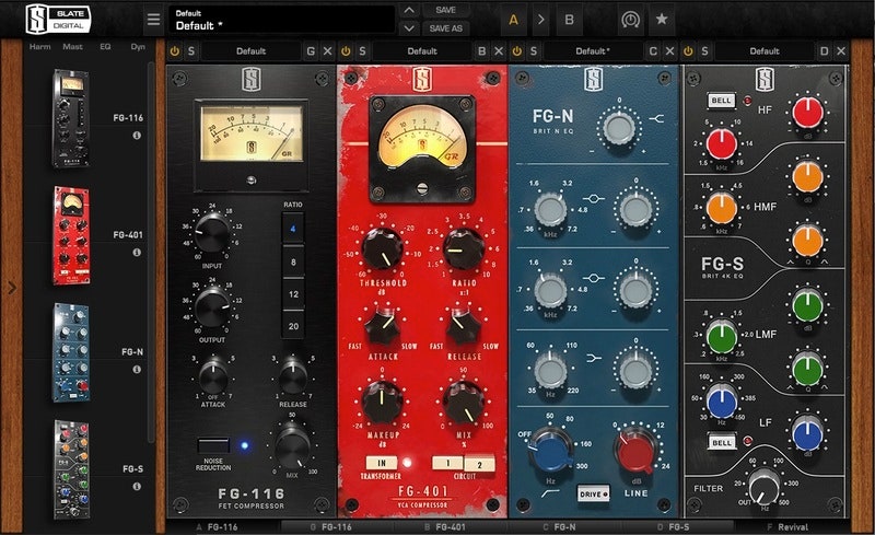 VMR 2.0 allows audio engineers to easily create the channel strips of their dreams using a library full of analog modeled plugins. Choose from dozens of modules including vintage modeled EQs, compressors, enhancers, filters, preamps, mixing consoles, and more. But even beyond the sound you can get with VMR 2.0, you also get the added bonus of speed and efficiency from having your entire processing chain in one convenient window. VMR 2.0 ships with the Mix Bundle One, which contains four Slate Digital processing modules: FG-401 Compressor, FG-S EQ, FG-116 FET Compressor and FG-N EQ.