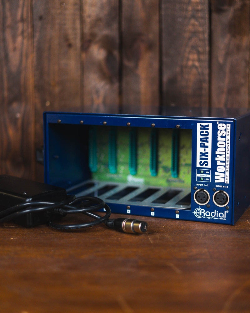 Radial SixPack är ett bärbart 6-slot rack för 500-serie-moduler, utformat för att fungera som en fristående kanalstrip eller som ett komplement till en befintlig studioinstallation. Den är idealisk för stereoapplikationer eller som en sidovagn i produktionsmiljöer.